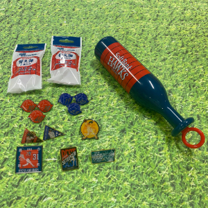また、ピンバッジ12個と応援キャノンバットがお得なセット価格で販売中です。人気の若鷹グッズの詰め合わせセットもお見逃しなく!