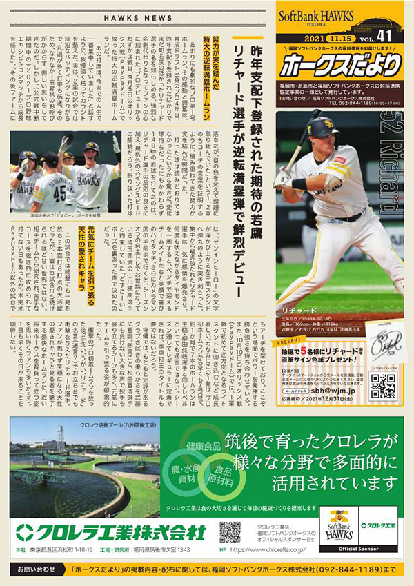 11月号の福岡市・糸島市版はリチャード選手、筑後市・久留米市版は椎野投手を特集した内容でお届けします。