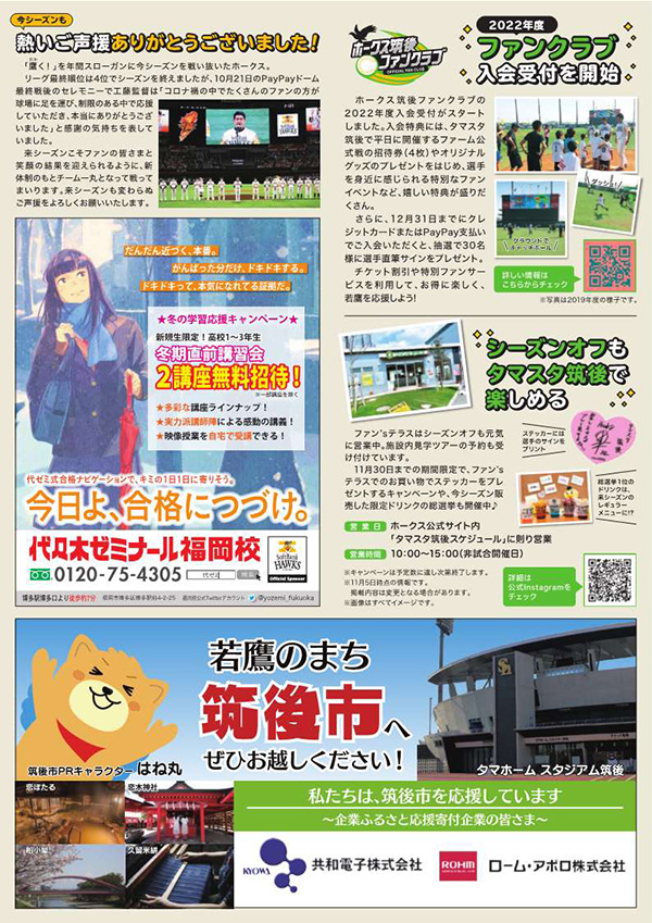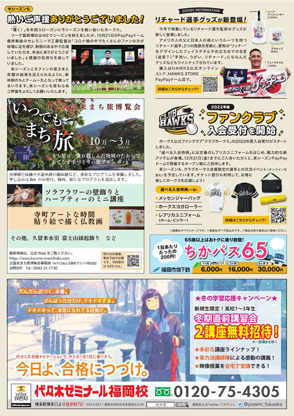 ※一部配布されない地域があります。また、『ホークスだより』の郵送対応は行っておりませんので、あらかじめご了承ください。
