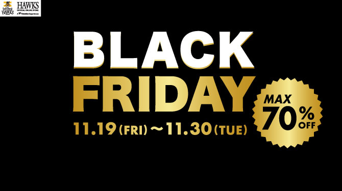 HAWKS STORE PayPayドーム店とHAWKS公式オンラインストアでは、最大70%OFFの「ブラックフライデーセール」を実施いたします。