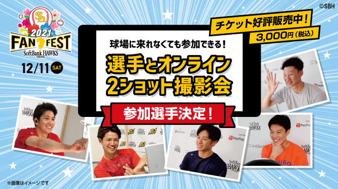 今年のファンフェスは、アプリひとつで選手と2人だけの時間を過ごせる「オンライン2ショット撮影会」を実施します。このたび、撮影会に参加する30名の豪華選手を大発表♪どの選手になるかは、当日までのお楽しみ!!チケットはクラブホークス会員限定で、11月30日(火)まで好評販売中です。オフシーズンならではの、選手とのふれ合いのチャンスをお見逃しなく!