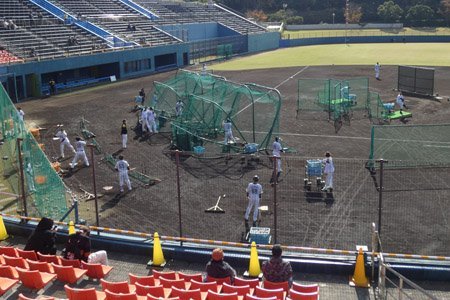 22日間にわたった宮崎秋季キャンプが25日、終了しました。この日は午前中だけの練習で、終了後にバスでチームは福岡へと戻りました。