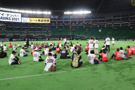 11月20日(土)にホークス公式背番号オーナー「マイ・ナンバーHAWKS」の限定イベント「シート発表体験」を開催しました♪PayPayドームのグラウンドで体操兄さん「トッシー」が名前とポジションをアナウンスし、ホークスの試合さながらのシート発表を体験いただきましたので、当日の様子をご報告します!