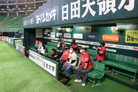 全員がポジションについたら、「プレイボール!」の声に合わせ、ピッチャーが始球式のように投球フォームを披露し、全員でポーズ!オーナーの皆さまからは「楽しかった!」「選手の気持ちになって緊張した!」という声や、「外野は遠かった!」など選手と同じ経験をしたからこそのメッセージも沢山いただきました。短い時間ではありましたが、選手気分を味わっていただけたようです♪