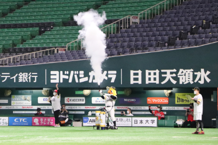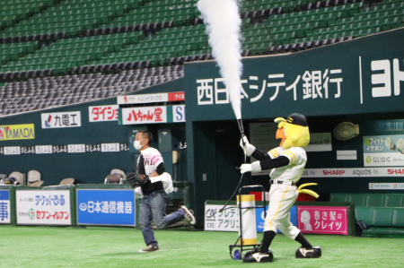 大音量のBGMが流れ、実際の試合と同じ映像がホークスビジョンに!そしてトッシーがオーナーの皆さまのお名前とポジションをアナウンス♪見ているこちらも心臓が飛び出そうな緊張感・・・!