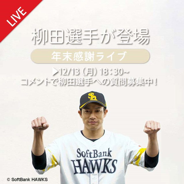 12月13日(月)18:30よりタンスのゲン年末感謝ライブを開催します!今回ゲストとして、2021年のタンスのゲンイメージキャラクターを務めた柳田悠岐選手が登場します。番組では、柳田選手への質問コーナーや抽選で柳田選手のサイングッズが当たるイベントを予定しています。タンスのゲン公式YouTube、Instagram、TikTokを是非ご覧ください!