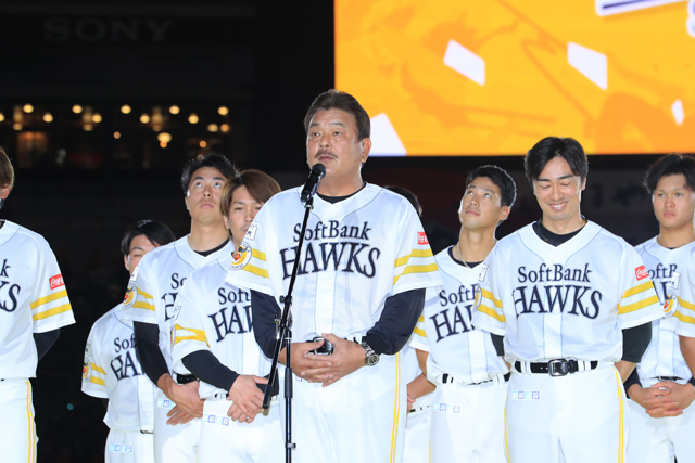 そしてファイナルセレモニーでは今宮健太選手がマイクの前に立ち、「中村晃さんから引き継いで選手会長を務めることになりました」とファンの皆様に報告。「今年は悔しいシーズンでした。練習して、練習して、練習して。来年は日本一になります」と2022年シーズンの大逆襲をファンの皆様に約束して、ファンフェスティバルは閉会となりました。