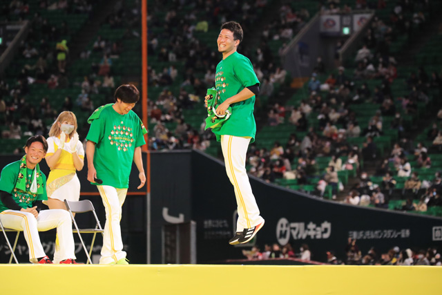 それからグラウンドイベントでは「バッティングシューター supported by キリンビール」「ホームランダービー 特別協賛 SoftBank」が開催。ホームランダービーではリチャード選手ら力自慢が集結する中、佐藤直樹選手が6発を放って見事チャンピオンに。その佐藤直選手の活躍が大きなひと押しとなって、チーム「グリーンフィールド」が見事総合優勝を果たしました。