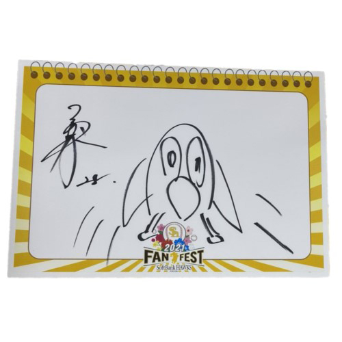 ファンフェスティバル2021の「お絵描き伝言リレー」で、選手が実際に描いたイラストに直筆サインを入れたパネル 抽選で19名様