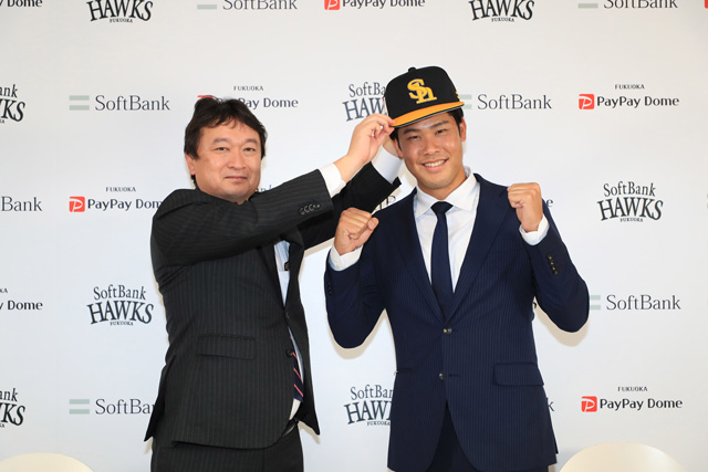 12月14日(火)、育成選手として新入団する藤井皓哉投手(背番号157)の入団会見がPayPayドームのプレスカンファレンスルームで行われました。