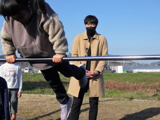 その後、外では鉄棒で楽しむ子どもたちの姿を見て嬉しそうにしていた柳田選手。この鉄棒は2018年の柳田選手からの寄付金で設置されたものです。