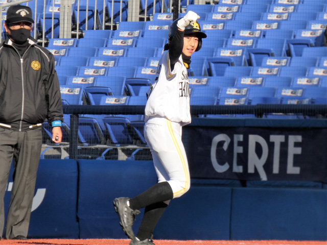 「緊張はしたけど、打てて走れてよかった。横浜スタジアムでプレーできたのも嬉しかった。憧れは柳田選手です」