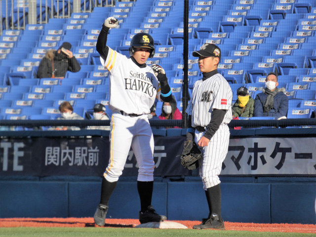 福岡ソフトバンクホークスJr.は大会初日、横浜スタジアムで千葉ロッテマリーンズJr.と対戦しました。