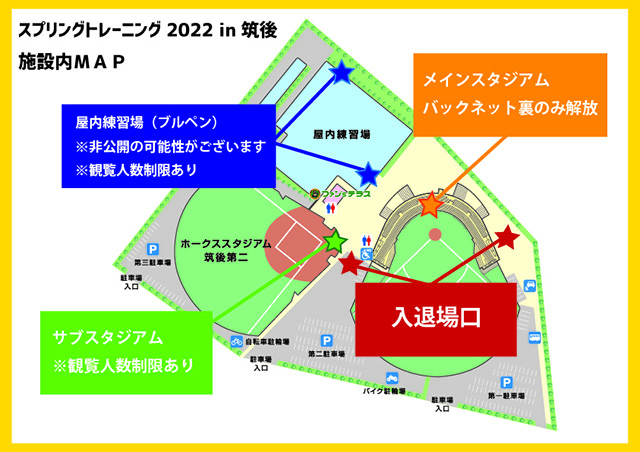 | ホークススタジアム 筑後第二 (サブ球場) | 観客席の動員制限あり | |