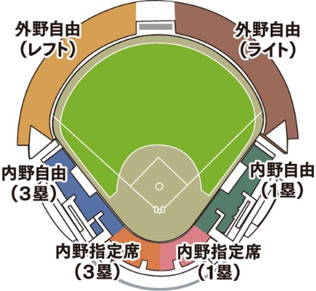 | 内野自由席(1塁・3塁) | 2,000円 | 2,500円 | 3,000円 |