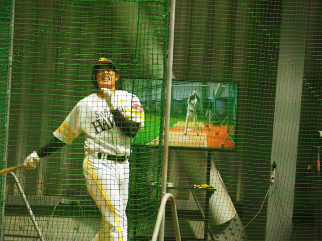 午後は室内で若鷹たちがティー打撃。なかなか下半身が堪えるメニューだったようで、特にルーキー達は滝汗を流しながら悶えていました。