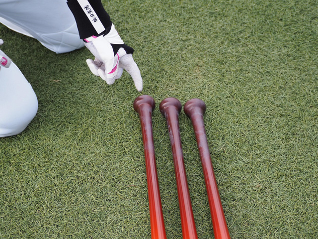 聞いてみると、それぞれ0.5インチずつ長さが違うのだそうです。昨季使用していた34インチのバットと新たに用意した33.5インチ、33インチのバット。どれが最適かを探るべく試行錯誤していました。