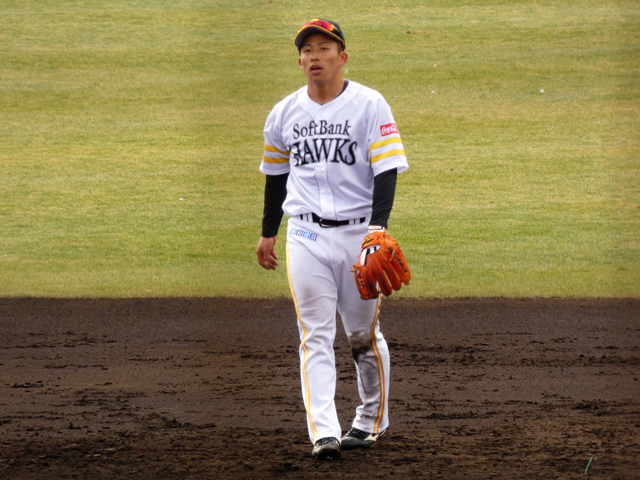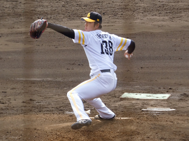 昨年までに比べて球の力強さが目立っていたのが大竹耕投手でした。昨季から体をひと回り大きくするトレーニングなどに取り組んでおり、さらに1月は和田毅投手の自主トレに弟子入りもして食事面などにもかなり気を配りました。「昨年の今頃よりも体重は13キロ増えています」。この日は打者6人に対して3安打を浴びたものの、結果よりも内容重視の時期。「直球の感じは去年までと違うし、和田さんにもキャッチャーの方にも強くなっていると言ってもらえています。春先には145キロ、夏場には150キロが投げられれば。今取り組んでいる体の動かし方などが出来れば現実味はあると思っています」と口にしていました。