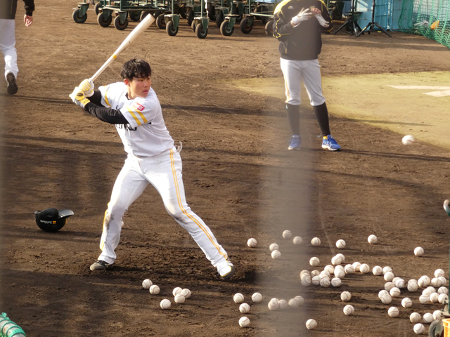 宮崎市・生目の杜運動公園での「福岡ソフトバンクホークス 春季キャンプ2022 in 宮崎 Supported by スカパー!」は、A組の練習で第2クールにして早くもシート打撃が行われました。