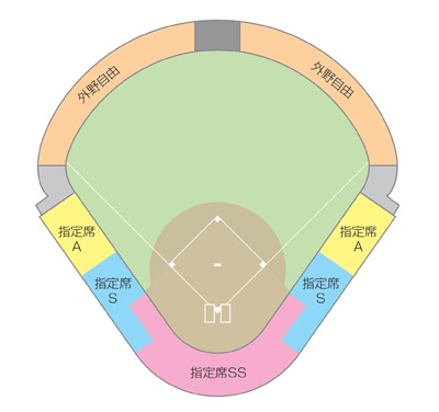| 外野自由(ライト・レフト) | 1,400円 | 1,500円 | 2,000円 |