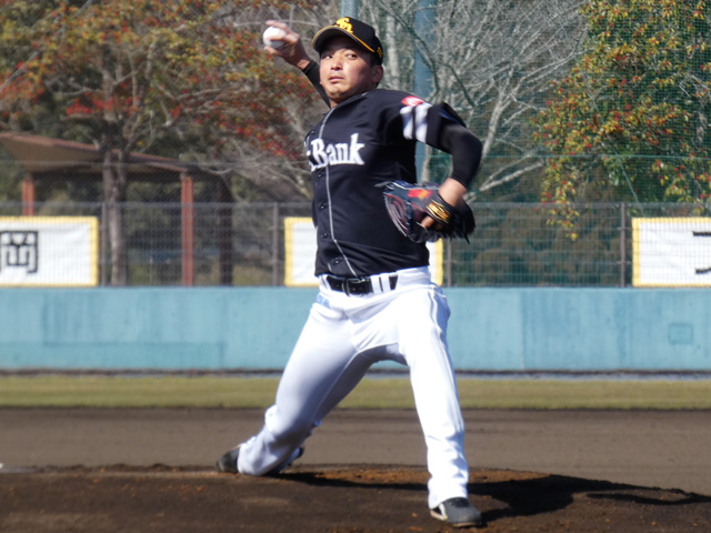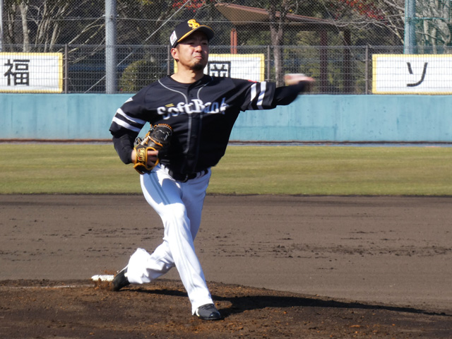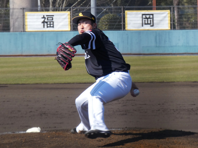 また、B組では東浜巨投手、嘉弥真新也投手、森唯斗投手がシート打撃に登板。今年初めてバッター相手に投球を行って、実戦勘などを養いました。
