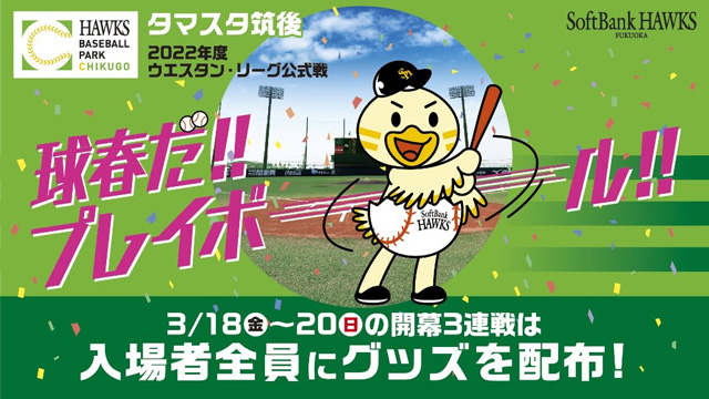 3月18日(金)から20日(日)の3日間は、2022シーズンのオープニングイベントとして入場者全員へタマスタ筑後オリジナルグッズを配布します!