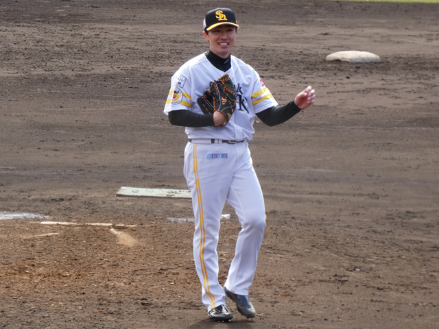 白組投手は完封リレー。先発した千賀滉大投手は球団計測で最速156キロをマークし2回無失点。和田毅投手も2回零封で続いた。さらに4番手の藤井皓哉投手は1回3者連続三振の快投。最速は150キロを記録。育成枠から再出発を期す右腕がまたアピールに成功した。