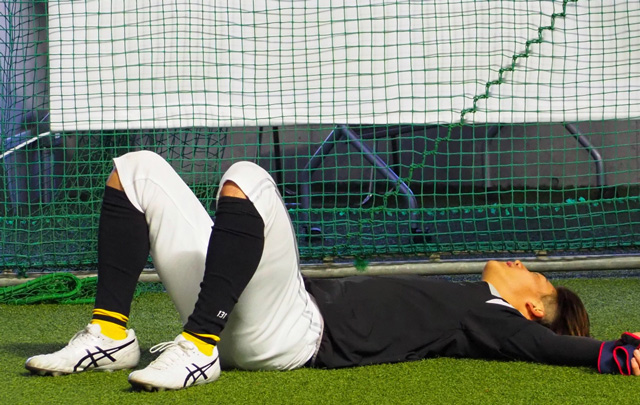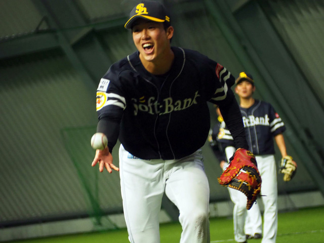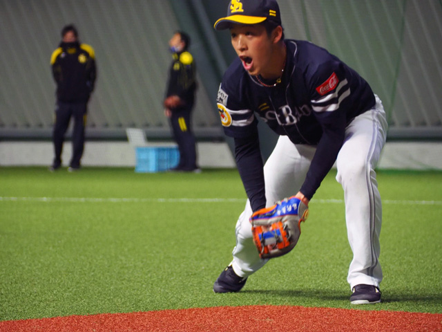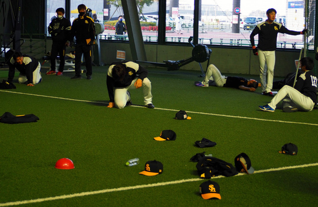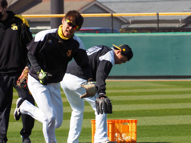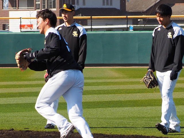 と言いつつも、氷が解けたサブグラウンドで、泉投手もしっかりフィールディング練習に汗を流しました。