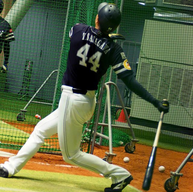 笹川吉康選手の打撃練習では、強烈な打球が飛びに飛んでいました。