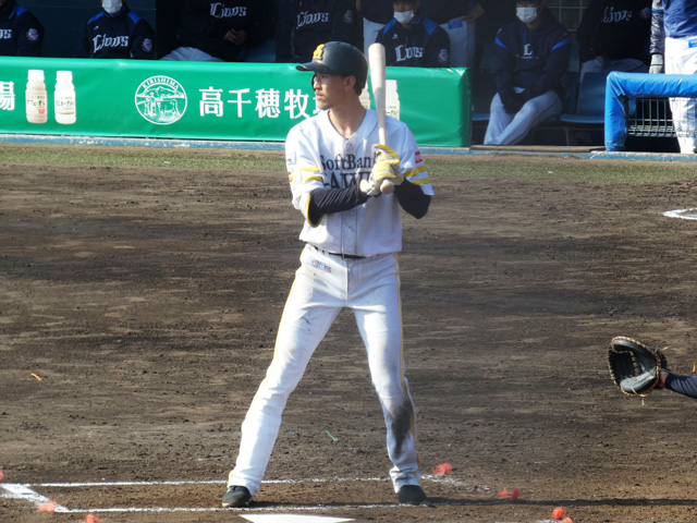 四回裏に7番・上林誠知選手の適時打で先制。上林選手はこの日3安打1打点の活躍だった。五回裏には途中出場の川瀬晃選手が右前適時打を放った。七回表に同点2ランを浴びたが、直後の裏の攻撃で牧原大成選手が中適時三塁打を放ち、これが決勝点となった。