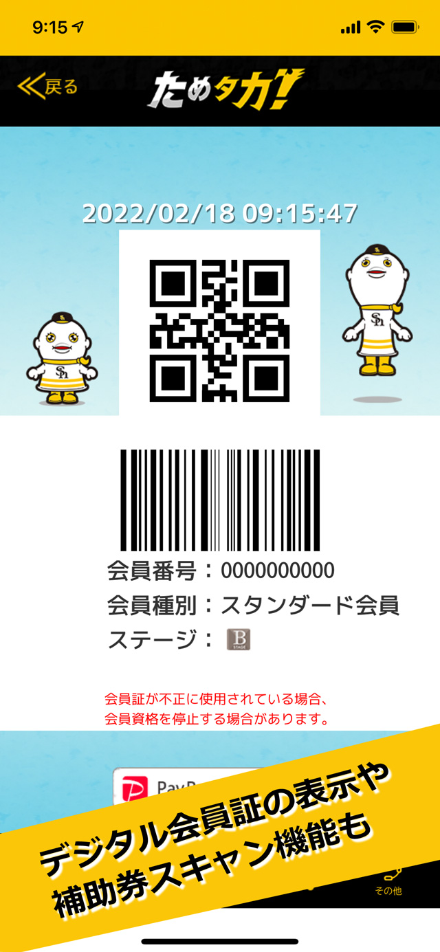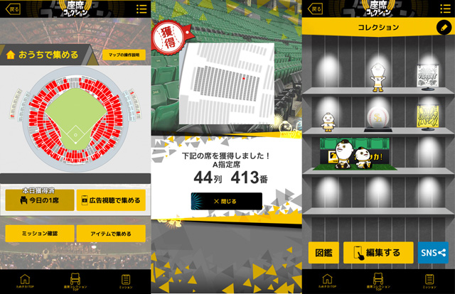 座席コレクションでは、OP戦からホーム戦チケットのQRコード/バーコードを読込むだけで、座席まで観戦記録が自動で可能です。更に、アプリ上のPayPayドームの座席も獲得していき、ミッションを達成しながらタカポイント等も獲得できます。
