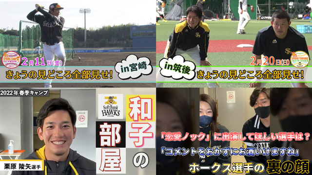 ホークス公式動画チャンネル「ホークスTV」は、いよいよ始まるシーズンに合わせてコンテンツをパワーアップしてお届けします!オープン戦期間中は、ホームゲーム10試合の試合前練習をライブ配信!さらに、オリジナルコンテンツも充実の新番組が続々配信予定です♪