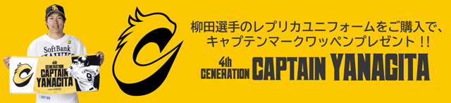 柳田選手のレプリカユニフォームをご購入いただくと、「キャプテンマークワッペン」をプレゼント!HAWKS STORE HOMEでは、その場で圧着サービスも実施します。数量限定のため、気になる方はお早めに!