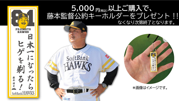 | 概要 | 税込5,000円以上の商品ご購入のお客様に先着で「藤本監督公約キーホルダー」のプレゼント |