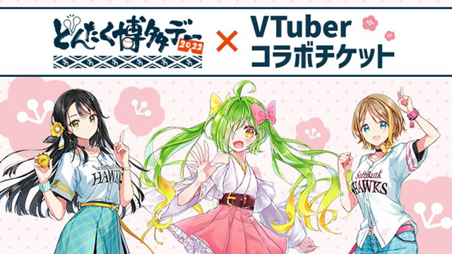4月28日(木)開催の西武ライオンズ戦では、ホークス公式バーチャルYouTuber(以下、VTuber)の鷹観音海&有鷹ひな(うみひな)と福岡市中央区舞鶴生まれのバーチャル博多っ子・舞鶴よかとの3人のVTuberとのトーク・撮影イベント付きチケットや、オリジナルグッズが付いたチケットが登場!チケットは3月14日(月)10:00発売。枚数限定につきご購入はお早めに!