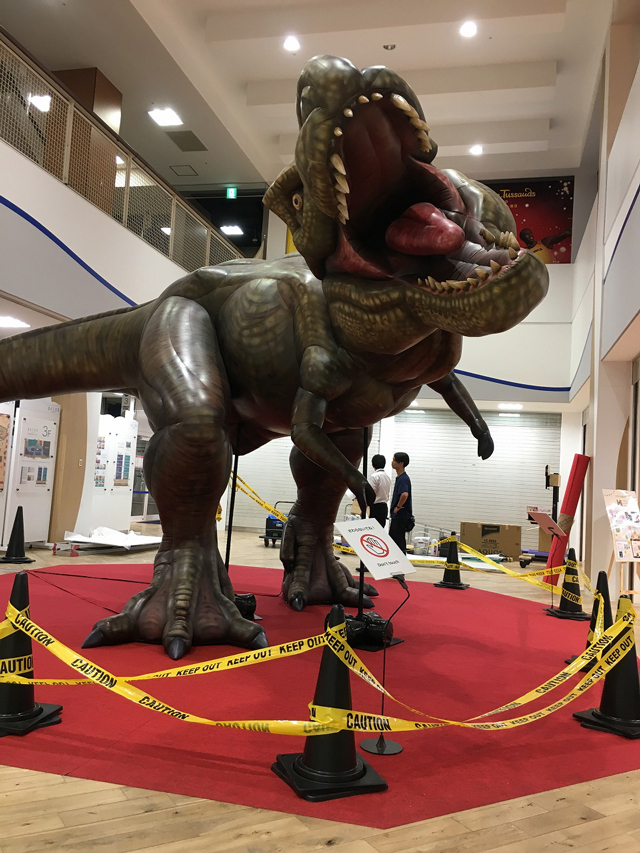 ティラノサウルス・レックスと、パラサウロロフスのバルーンがBOSS E・ZO FUKUOKA前に登場!高さ3mを超える2体が皆さんをお出迎えします!