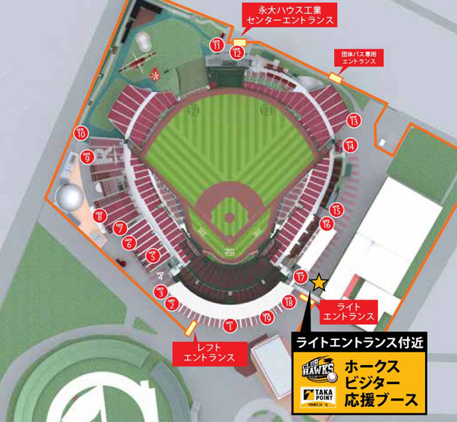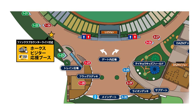 ※「ホークスビジター応援ブース」の場所は、下記、案内図にてご確認ください