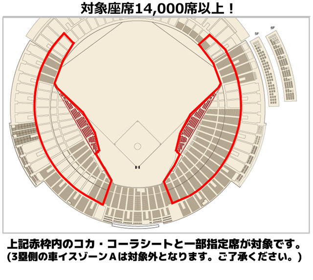 一部内野席および外野席を対象席に拡大し、14,000席以上が対象となっております!