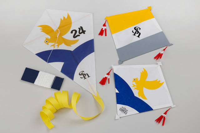 長崎県民には馴染みのある伝統的工芸品「長崎凧(はた)」がホークスとコラボ!「凧」は飾るだけでも運気上昇のアイテムと言われています。ホークスイエローの鷹が飛ぶデザインや、アンバサダーである栗原選手の背番号がデザインされた凧もご用意!