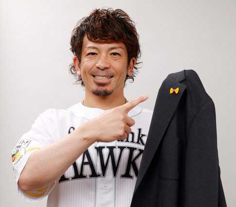 鹿児島県奄美大島の伝統織物、大島紬(つむぎ)の端材を使用したブートニエール(ジャケットアクセサリー)です。アンバサダーの松田選手の選手カラーピンクや、ホークスイエロー等に染め上げた特別デザインの一品で、洋装を作るときの端切れを利用した地球にも社会にも優しいアイテムに仕上がっています。