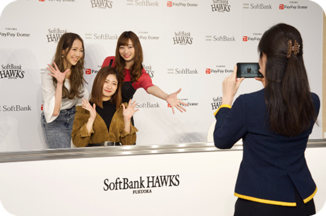 ホークスの選手が実際に試合で使用しているお立ち台で記念撮影もできます。また、選手のベンチや入団会見等で使用している記者会見室も開放しております。インスタ映え間違いなし!
