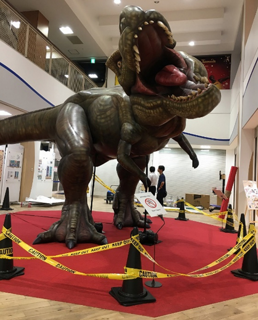 ティラノサウルス・レックスと、パラサウロロフスのバルーンがBOSS E・ZO FUKUOKA前に登場!高さ3mを超える2体が皆さんをお出迎えします!