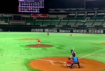 福岡PayPayドームでは、ご利用頂くみなさまに安心して草野球を楽しんで頂くために、館内を十分な換気を行うことで厚生労働省の定める空気環境基準を満たす状態を維持するとともに、各所に消毒液を設置することで、クリーンな空気環境・施設環境を確保してまいります。ご利用いただくみなさまにも、衛生対策強化へのご理解・ご協力をお願い申し上げます。