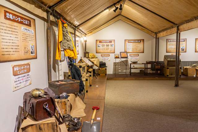 発掘テントでは、発掘道具や化石ができる過程などを分かりやすく解説!化石発掘について詳しく学ぼう!
