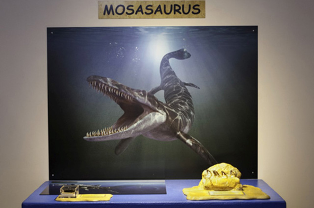 ティラノサウルスと同じくらいの大きさのスピノサウルスやモササウルスの本物の歯の化石を展示します。これらの化石は実際に触ることができるので、より詳しく観察することができます。