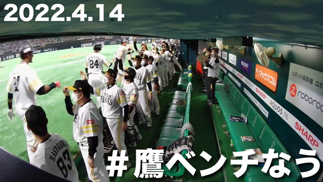 ホーム戦限定、1塁側ベンチ内に設置した定点カメラで、ホークスベンチの様子をライブ配信!得点後の盛り上がり、試合展開を見守る選手の様子が見られます。中継と一緒に視聴しながら、「#鷹ベンチなう」で感動をつぶやく楽しみ方も!