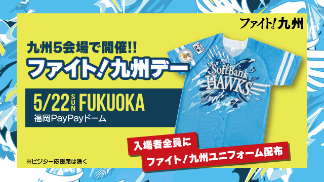 当日の観戦チケットをお持ちの来場者(ビジター応援席除く)に、ファイト!九州2022ユニフォームをプレゼントします。