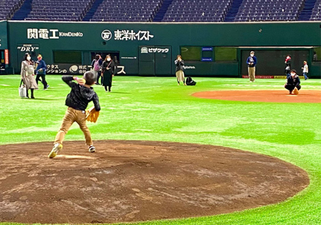 マウンド投球体験・3塁側ベンチ見学・キャッチボールなど