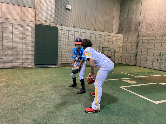 キャッチボール、ゴロの捕球練習、ダブルプレーの動き等のレクチャーを通じて、今宮選手から悠音さんにアドバイスしたことは、「脇を締めて、グローブをなるべく縦にしてボールをキャッチすること」。そうすることで、素早く送球ができます。その点を意識した練習を何度も繰り返します。「すぐにできるようになるのは難しいけれど、反復練習をすれば少しずつ自分の中でコツを掴めるようになるから頑張って!」と今宮選手から激励の言葉をもらいました。
