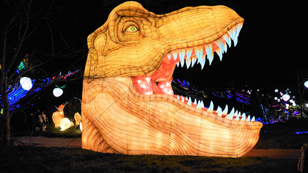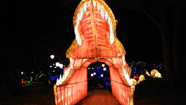 「鷹の祭典2022inPayPayドーム」期間中、PayPayドーム5番ゲート前大階段下の山笠広場に、巨大な恐竜ランタンが登場!恐竜の口の中で撮影もできます♪
